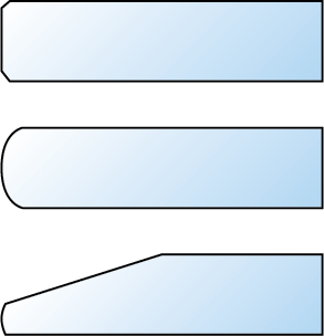 Beveled: Top edges have a large bevel to eliminate the hard edge around the top of the glass. There are a variety of bevel sizes available. We generally recommend 1 or 1-1/2 inch bevel. Bevels are a good choice for tables you work at. Suitable for square, rectangular and round tops. It is more costly than 'Flat Polished' edges.